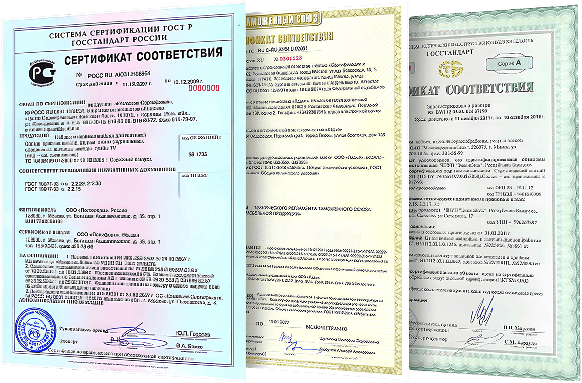 Результат — декларация соответствия или сертификат соответствия (ТР ТС, ГОСТ Р).